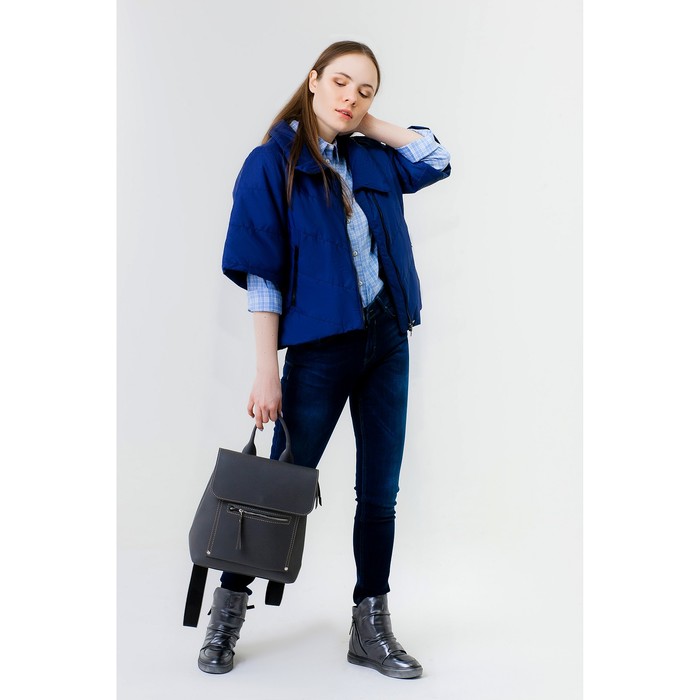 Куртка женская, рост 168 см, размер 46, цвет синий (арт. 39) — модель на косой молнии имеет укороченные рукава и два кармана. Она отлично подойдёт для повседневной носки.