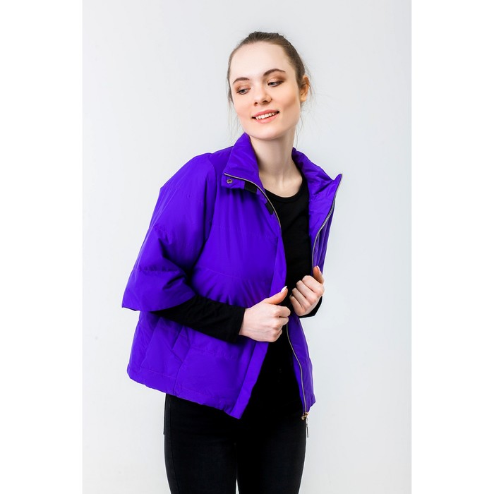 Куртка женская, рост 168 см, размер 50, цвет фиолетовый (арт. 63 С+) — модель с укороченными рукавами, воротником-стойкой и двумя карманами, которая отлично подойдёт для повседневной носки.