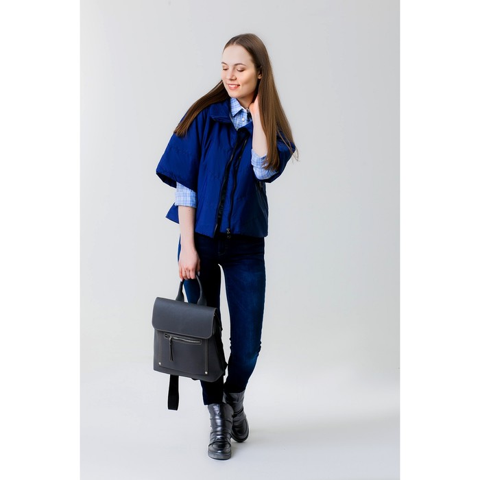 Куртка женская, рост 168 см, размер 50, цвет синий (арт. 39 С+) — модель на косой молнии имеет укороченные рукава и два кармана. Она отлично подойдёт для повседневной носки.