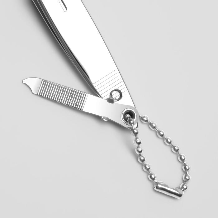 Кусачки-книпсер с пилкой маникюрные, с цепочкой, 5,5(±0,5)см, цвет серебристый