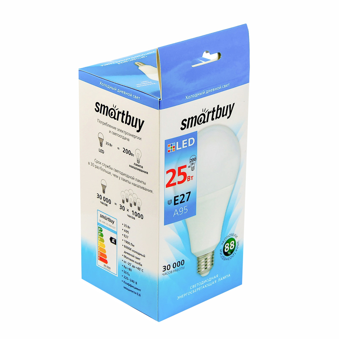 Невозможно представить себе современный мир без электроприборов. Благодаря качественным материалам и работе дизайнеров они способны сделать нашу жизнь комфортнее и порадовать глаз. Лампа cветодиодная Smartbuy, A95, E27, 25 Вт, 6000 К — прекрасный выбор, если вы находитесь в поиске товара, который идеально впишется в ежедневную жизнь и прослужит долго.