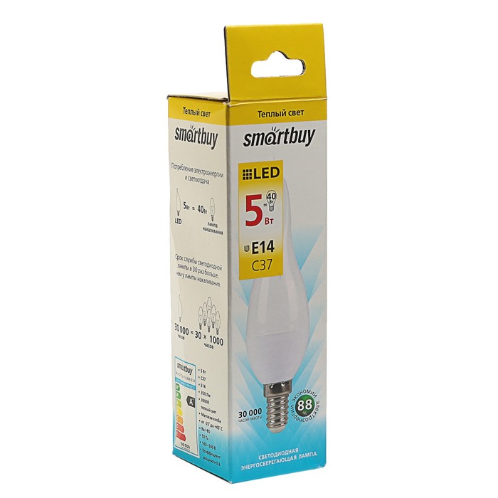 Невозможно представить себе современный мир без электроприборов. Благодаря качественным материалам и работе дизайнеров они способны сделать нашу жизнь комфортнее и порадовать глаз. Лампа cветодиодная Smartbuy, C37, E14, 5 Вт, 3000 К, теплый белый, матовое стекло — прекрасный выбор, если вы находитесь в поиске товара, который идеально впишется в ежедневную жизнь и прослужит долго.