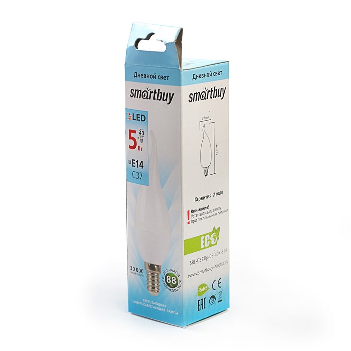 Невозможно представить себе современный мир без электроприборов. Благодаря качественным материалам и работе дизайнеров они способны сделать нашу жизнь комфортнее и порадовать глаз. Лампа cветодиодная Smartbuy, C37, E14, 5 Вт, 4000 К, дневной свет, матовое стекло — прекрасный выбор, если вы находитесь в поиске товара, который идеально впишется в ежедневную жизнь и прослужит долго.