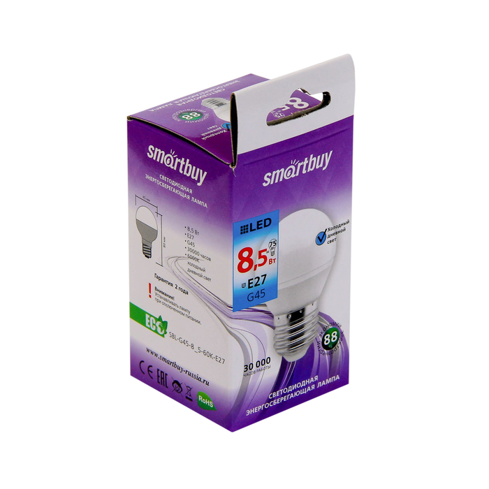 Невозможно представить себе современный мир без электроприборов. Благодаря качественным материалам и работе дизайнеров они способны сделать нашу жизнь комфортнее и порадовать глаз. Лампа cветодиодная Smartbuy, G45, Е27, 8,5 Вт, 6000 К — прекрасный выбор, если вы находитесь в поиске товара, который идеально впишется в ежедневную жизнь и прослужит долго.