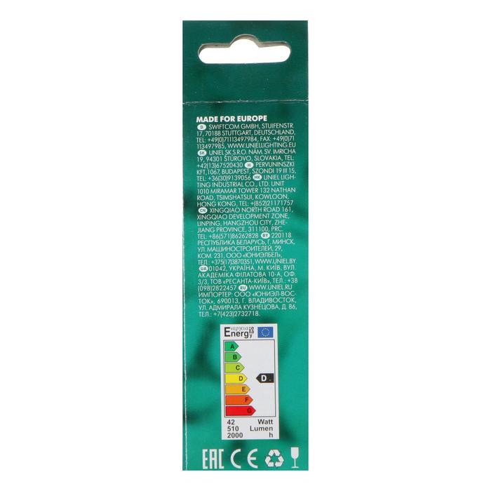Лампа галогенная Uniel, Е14, 42 Вт, 230 В, "свеча", прозрачная золотая