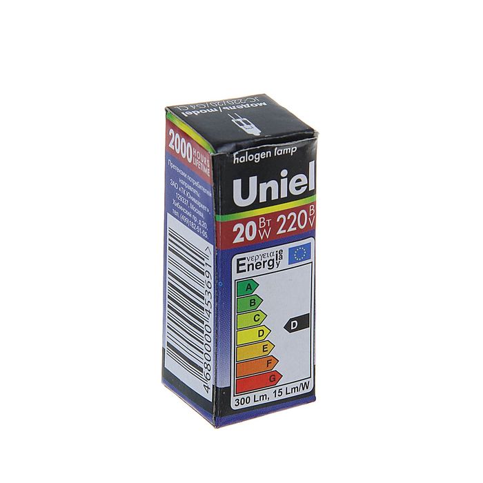Лампа галогенная Uniel, G4, 20 Вт, 220 В, прозрачная