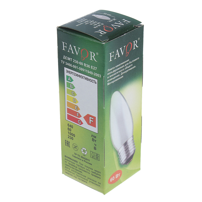 Лампа накаливания Favor ДС, Е27, 60 Вт, 230 В, матовая