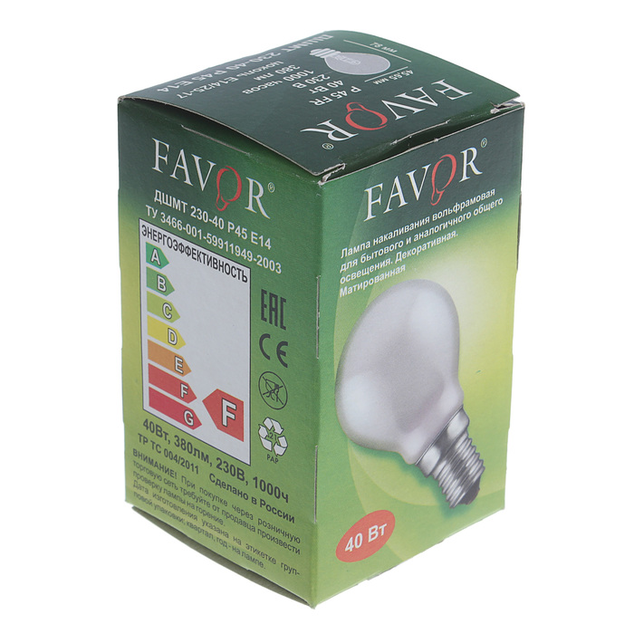 Лампа накаливания Favor ДШ, Е14, 40 Вт, 230 В, матовая