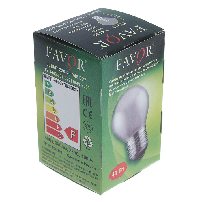 Лампа накаливания Favor ДШ, Е27, 40 Вт, 230 В, матовая