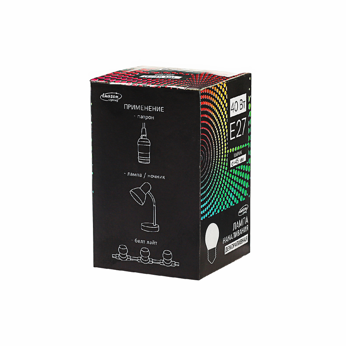 Лампа накаливания Luazon Lighthing E27, 40W, для белт лайта, белая, 220 В