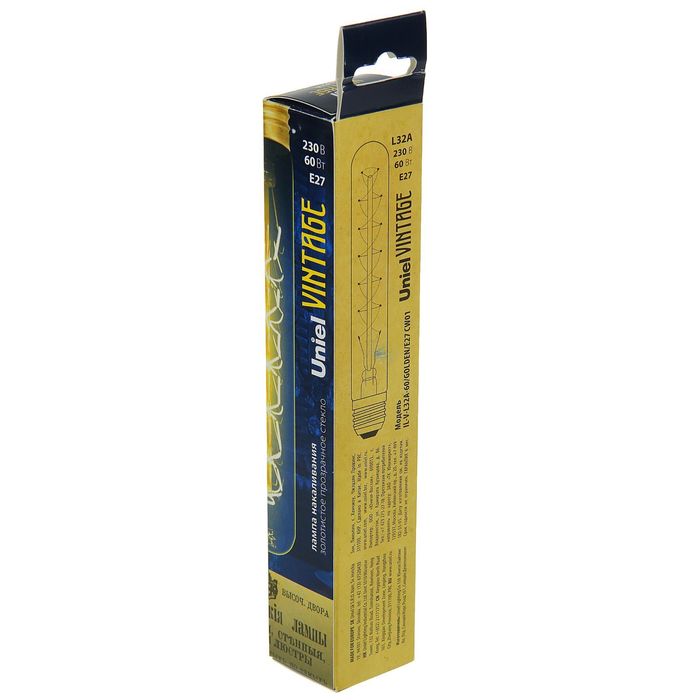 Лампа накаливания Uniel Vintage, Е27, 60 Вт, 220 В, длина 185 мм, форма нити CW, цилиндр