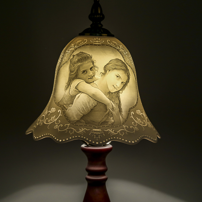 Простой, на первый взгляд, светильник становится предметом обожания в любом пространстве. Роскошный керамический абажур томно накрывает тёплый лучик света, освещая пространство вокруг себя. Необычная идея воплощена в этом предмете интерьера: загорается свет, и перед взором открывается прекрасный вид орнамента, который словно тиснением отпечатан на белоснежном «шатре». Не лампа настольная керамический абажур "Сёстры", а истинное произведение искусства.