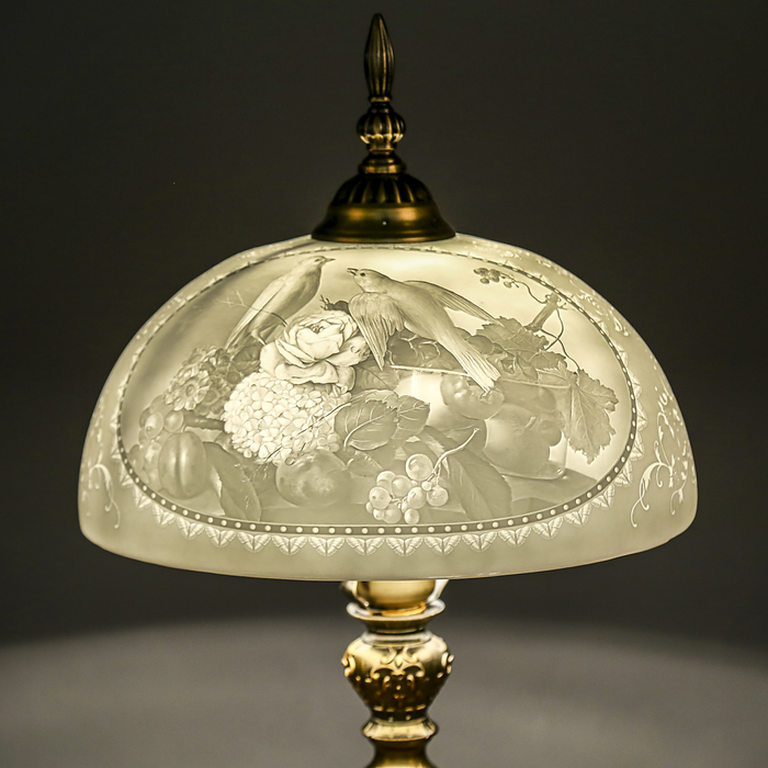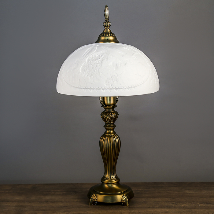 Простой, на первый взгляд, светильник становится предметом обожания в любом пространстве. Роскошный керамический абажур томно накрывает тёплый лучик света, освещая пространство вокруг себя. Необычная идея воплощена в этом предмете интерьера: загорается свет, и перед взором открывается прекрасный вид орнамента, который словно тиснением отпечатан на белоснежном «шатре». Не лампа настольная керамический абажур "Три подруги, а истинное произведение искусства.