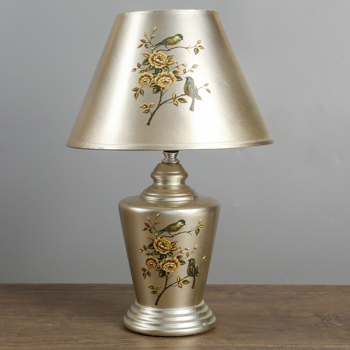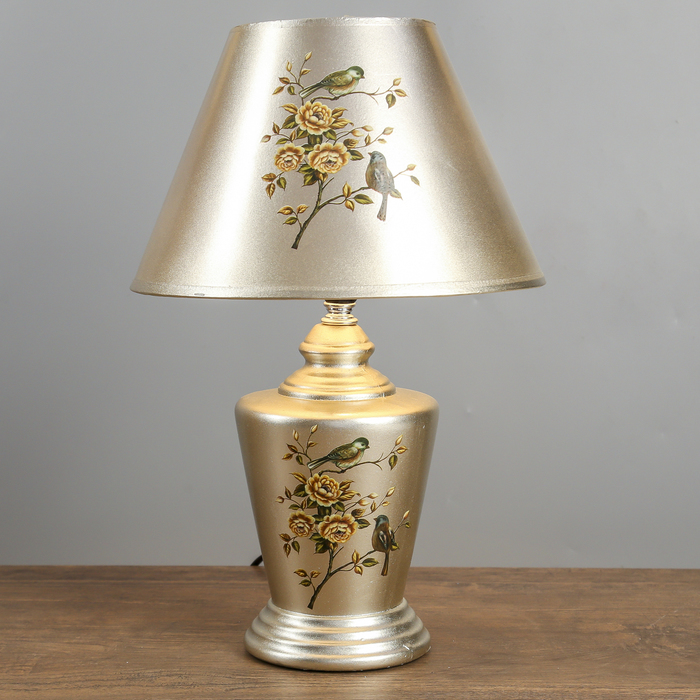Лампа настольная керамика "Винтаж. Букет пионов" металлик золото ваза Е14 220В 36х25х25см