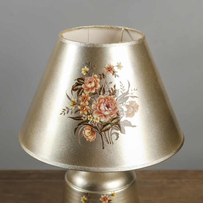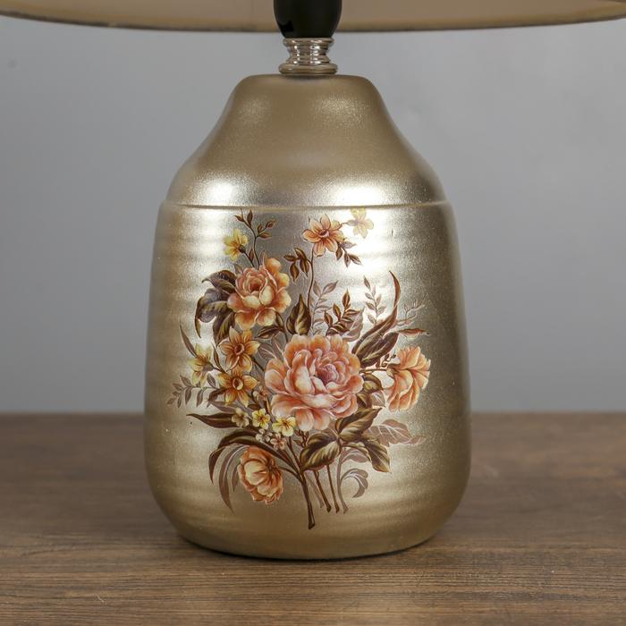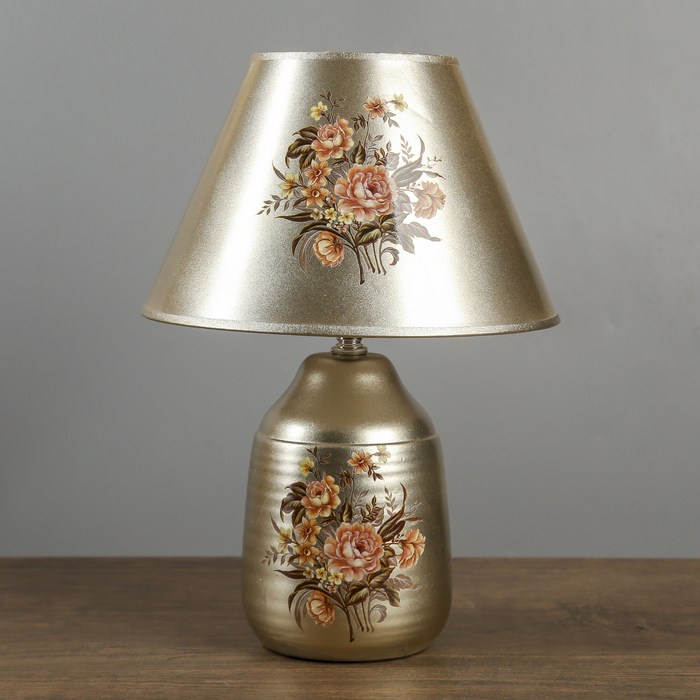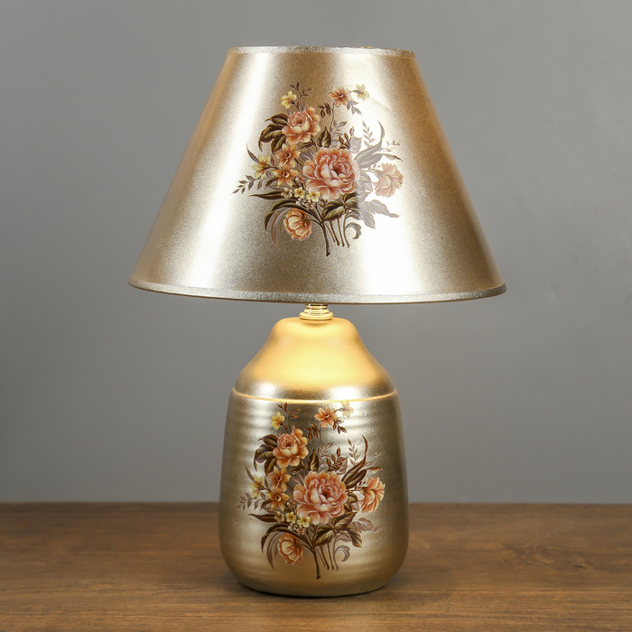 Лампа настольная керамика "Винтажный букет пионов" металлик золото Е14 220В 36х25х25 см