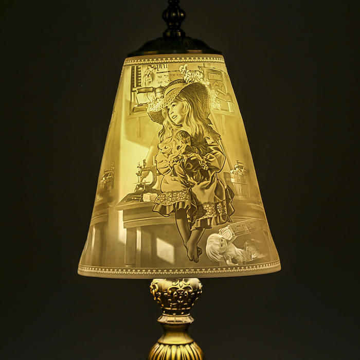 Простой, на первый взгляд, светильник становится предметом обожания в любом пространстве. Роскошный керамический абажур томно накрывает тёплый лучик света, освещая пространство вокруг себя. Необычная идея воплощена в этом предмете интерьера: загорается свет, и перед взором открывается прекрасный вид орнамента, который словно тиснением отпечатан на белоснежном «шатре». Не лампа настольная "Пастушок", керамический абажур, а истинное произведение искусства.