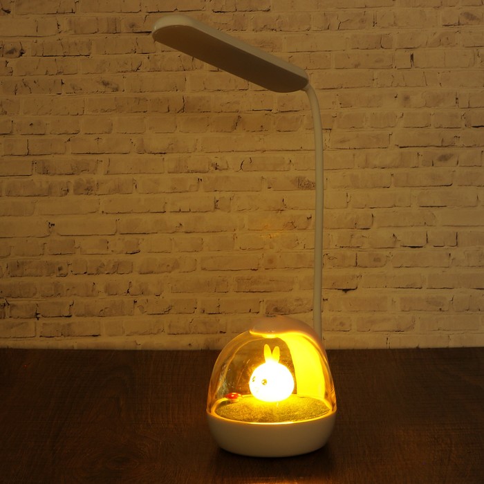 Лампа настольная сенсор 3 режима LEDх20 11W USB АКБ "Зайка на лугу"низ светится 50х11х10см
