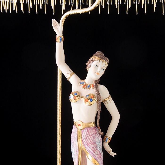 Изящный светильник от известной итальянской торговой марки Sabadin выполнен из белоснежного фарфора с позолотой в 24 карата. Подставка создана из благородных пород дерева. Каждая деталь буквально выточена руками искусных мастеров.