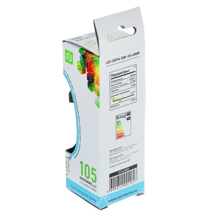 Светодиодная лампа ASD 5 Вт с цоколем Е14 позволит заменить энергосберегающую лампочку в осветительных приборах, что значительно сэкономит ваши денежные средства.