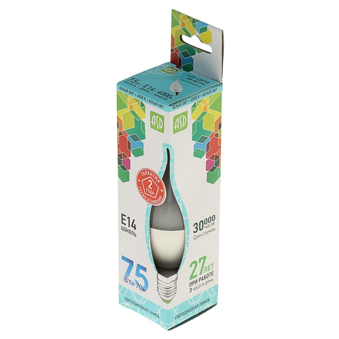 Светодиодная лампа ASD 7,5 Вт с цоколем Е14 позволит заменить энергосберегающую лампочку в осветительных приборах, что значительно сэкономит ваши денежные средства.