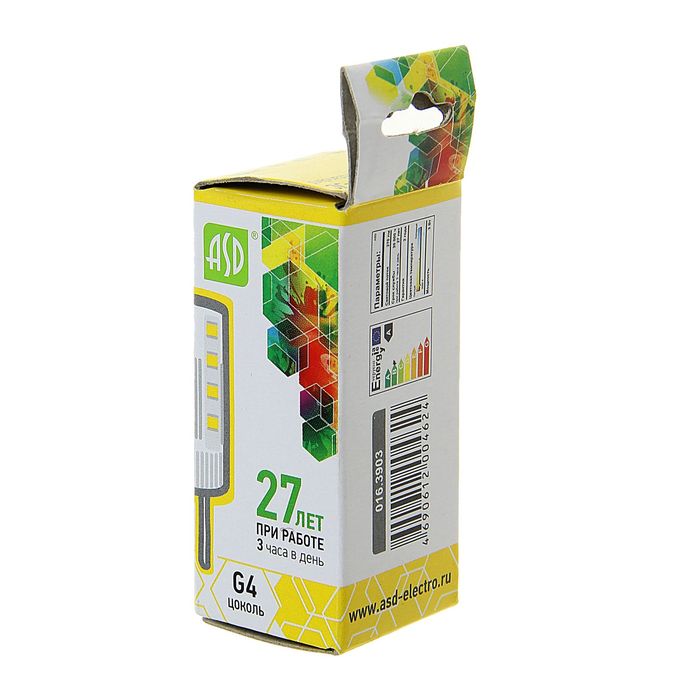 Лампа светодиодная ASD, G4, 3 Вт, 12 В, 3000 К, 270 Лм