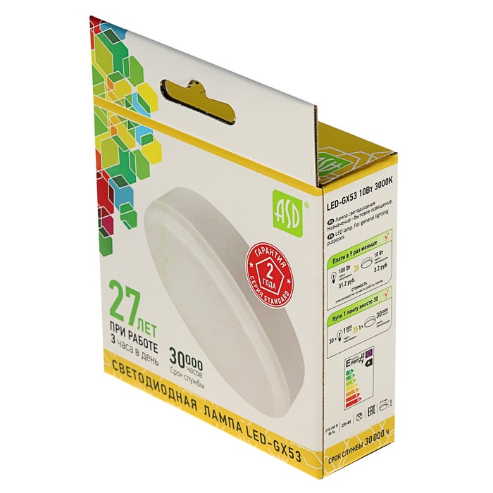 Невозможно представить себе современный мир без электроприборов. Благодаря качественным материалам и работе дизайнеров они способны сделать нашу жизнь комфортнее и порадовать глаз. Лампа светодиодная ASD GX53, 10 Вт, 230 В, 3000 К, 900 Лм — прекрасный выбор, если вы находитесь в поиске товара, который идеально впишется в ежедневную жизнь и прослужит долго.