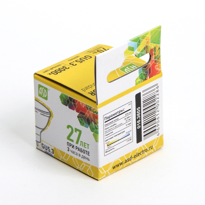 Невозможно представить себе современный мир без электроприборов. Благодаря качественным материалам и работе дизайнеров они способны сделать нашу жизнь комфортнее и порадовать глаз. Лампа светодиодная ASD JCDR GU5.3, 7.5 Вт, 230 В, 3000 К, 675 Лм — прекрасный выбор, если вы находитесь в поиске товара, который идеально впишется в ежедневную жизнь и прослужит долго.
