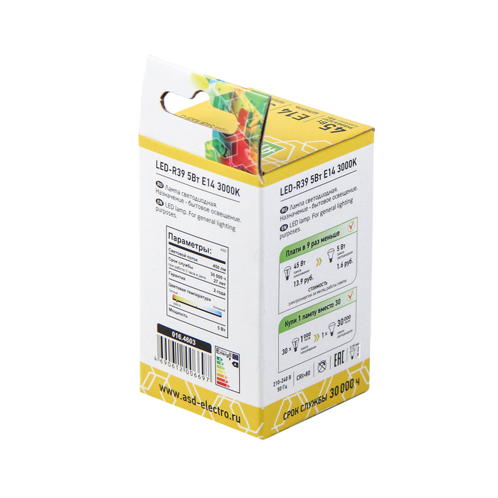 Невозможно представить себе современный мир без электроприборов. Благодаря качественным материалам и работе дизайнеров они способны сделать нашу жизнь комфортнее и порадовать глаз. Лампа светодиодная ASD R39, Е14, 5 Вт 230 В, 3000 К, 450 Лм — прекрасный выбор, если вы находитесь в поиске товара, который идеально впишется в ежедневную жизнь и прослужит долго.