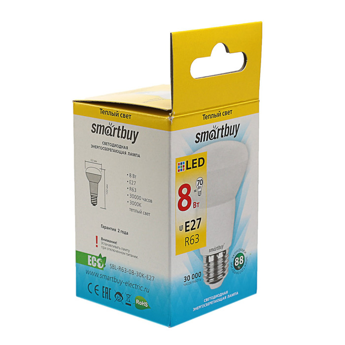 Невозможно представить себе современный мир без электроприборов. Благодаря качественным материалам и работе дизайнеров они способны сделать нашу жизнь комфортнее и порадовать глаз. Лампа светодиодная Smartbuy, R63, Е27, 8 Вт, 3000 К — прекрасный выбор, если вы находитесь в поиске товара, который идеально впишется в ежедневную жизнь и прослужит долго.
