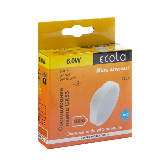 Лампа светодиодная Ecola GX53, 6,0 Вт, 220 В, 2800 K, матовое стекло, 27 x 75