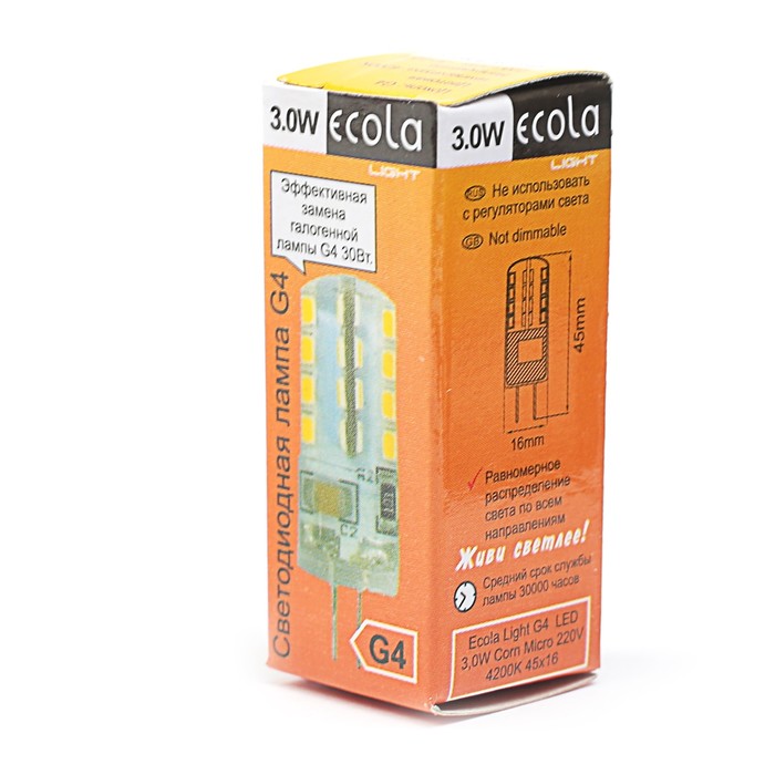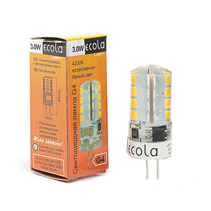 Невозможно представить себе современный мир без электроприборов. Благодаря качественным материалам и работе дизайнеров они способны сделать нашу жизнь комфортнее и порадовать глаз. Лампа светодиодная Ecola Light Corn Micro, G4, 3 Вт, 220 В, 4200K — прекрасный выбор, если вы находитесь в поиске товара, который идеально впишется в ежедневную жизнь и прослужит долго.