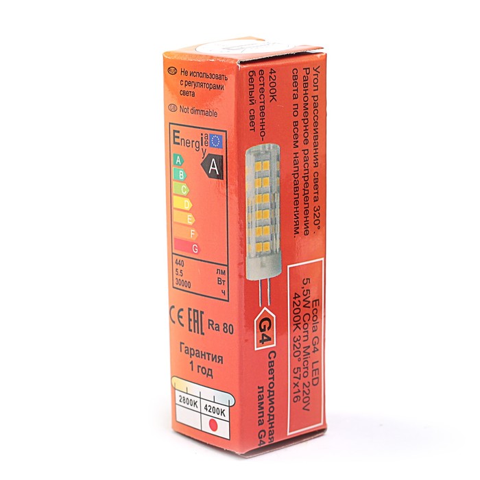 Лампа светодиодная Ecola Light Corn Micro, G4, 5,5 Вт, 220 В, 4200K, 320°