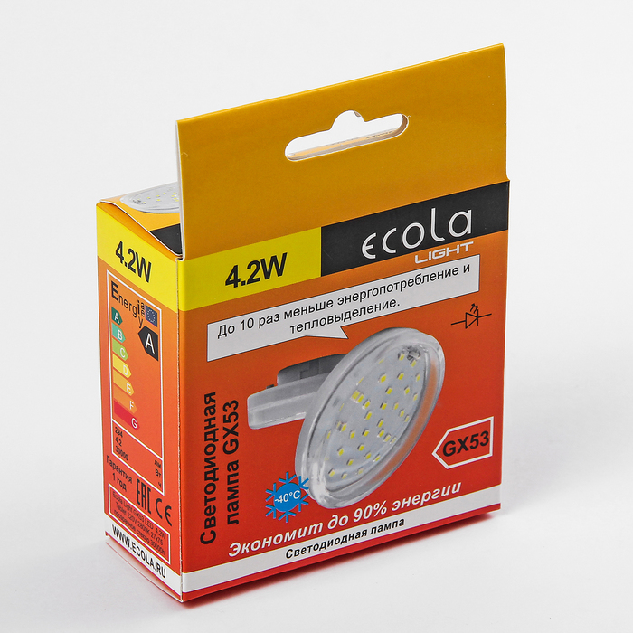 Лампа светодиодная Ecola Light, GX53, 4,2 Вт, 2800K, 220 В, прозрачное стекло, 27x75