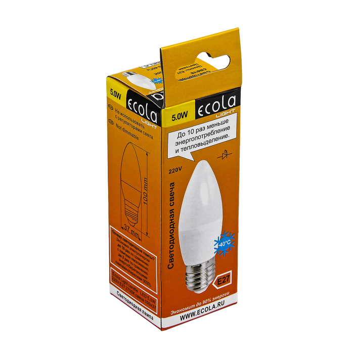 Невозможно представить себе современный мир без электроприборов. Благодаря качественным материалам и работе дизайнеров они способны сделать нашу жизнь комфортнее и порадовать глаз. Лампа светодиодная Ecola Light, С37, E27, 5,0 Вт, 2700K, 220 В, свеча 100x37 — прекрасный выбор, если вы находитесь в поиске товара, который идеально впишется в ежедневную жизнь и прослужит долго.
