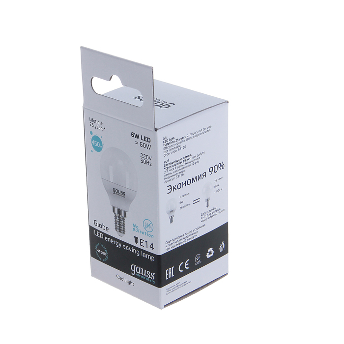 Лампа светодиодная Gauss, Elementary, G45, E14, 6 Вт, 4100K