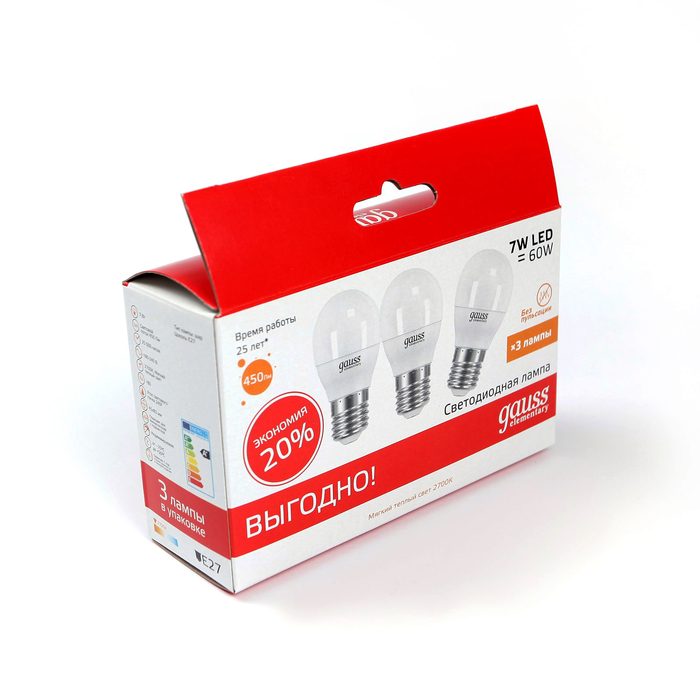 Невозможно представить себе современный мир без электроприборов. Благодаря качественным материалам и работе дизайнеров они способны сделать нашу жизнь комфортнее и порадовать глаз. Лампа светодиодная Gauss Elementary Globe 7 Вт, E27, 2700 K, (3 лампы в упаковке) — прекрасный выбор, если вы находитесь в поиске товара, который идеально впишется в ежедневную жизнь и прослужит долго.