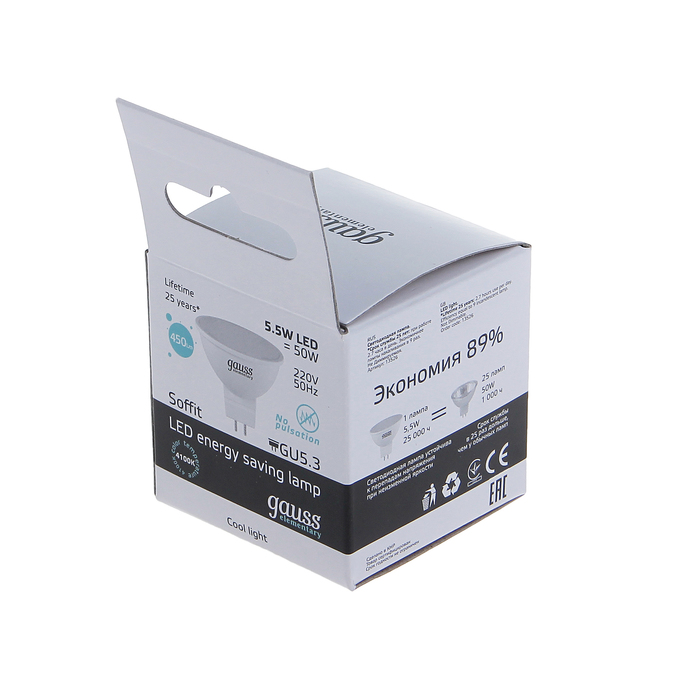 Лампа светодиодная Gauss, Elementary, MR16, GU5.3, 5.5 Вт, 4100К