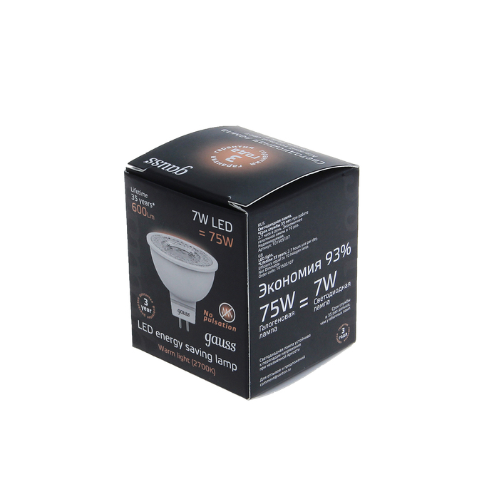 Лампа светодиодная Gauss, MR16, GU5.3, 7 Вт, 2700K
