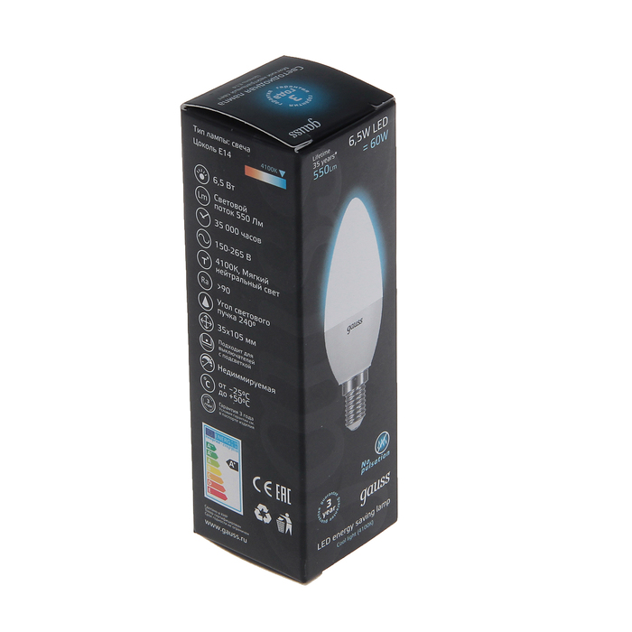 Лампа светодиодная Gauss, С37, E14, 6.5 Вт, 4100К