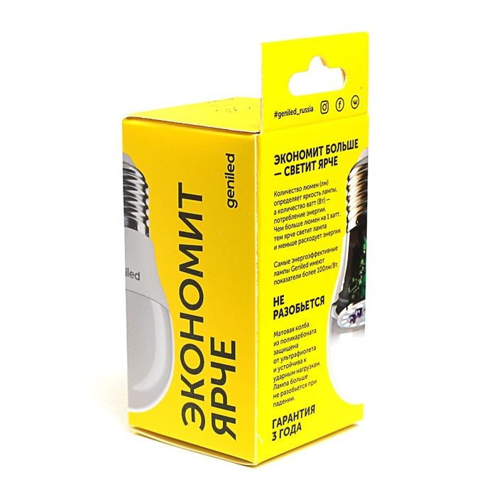Невозможно представить себе современный мир без электроприборов. Благодаря качественным материалам и работе дизайнеров они способны сделать нашу жизнь комфортнее и порадовать глаз. Лампа светодиодная Geniled, Е27, G45, 6 Вт, 2700 К, матовая — прекрасный выбор, если вы находитесь в поиске товара, который идеально впишется в ежедневную жизнь и прослужит долго.