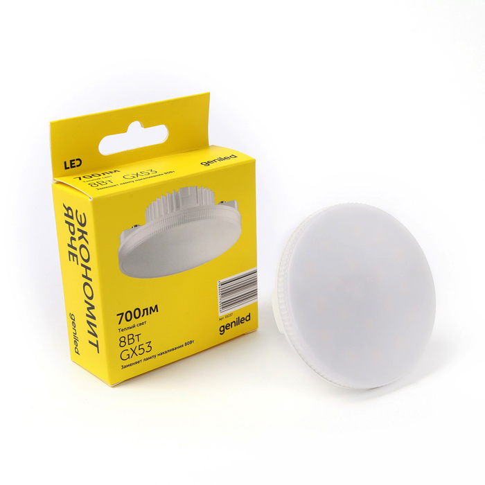 Лампа светодиодная Geniled, GX53, 8 Вт, 2700 К, теплый белый