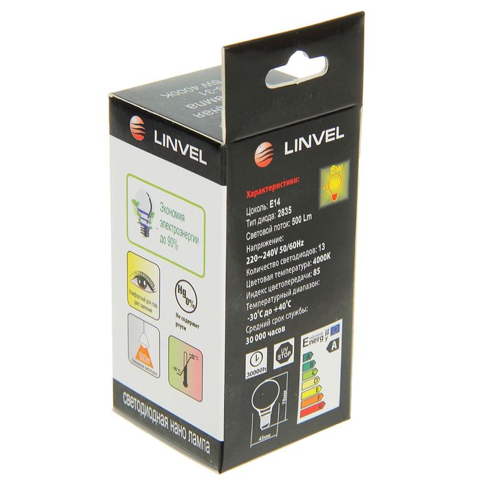 Светодиодная лампа Linvel оснащена керамическим радиатором, который моментально отводит тепло. Подходит для приборов с цоколем E14. Отличается длительным сроком службы и большей экономией энергии по сравнению с лампами накаливания.