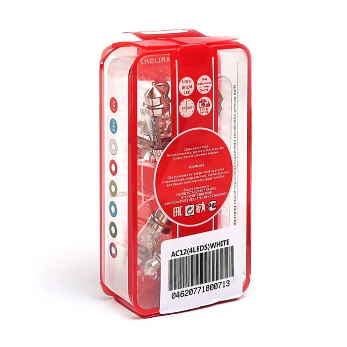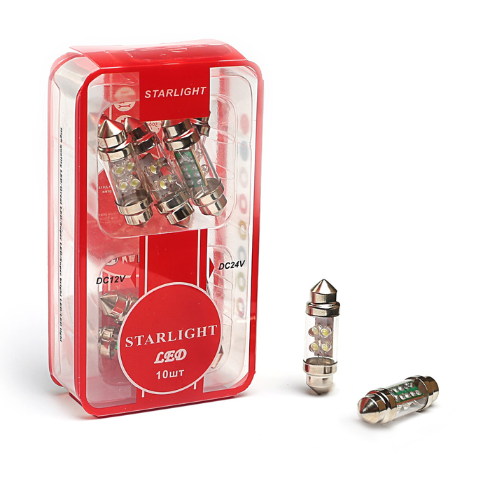 Лампа светодиодная STARLIGHT, C10W (36mm х 10mm), 12 В, 10 Вт, 4LEDS, БЕЛЫЙ