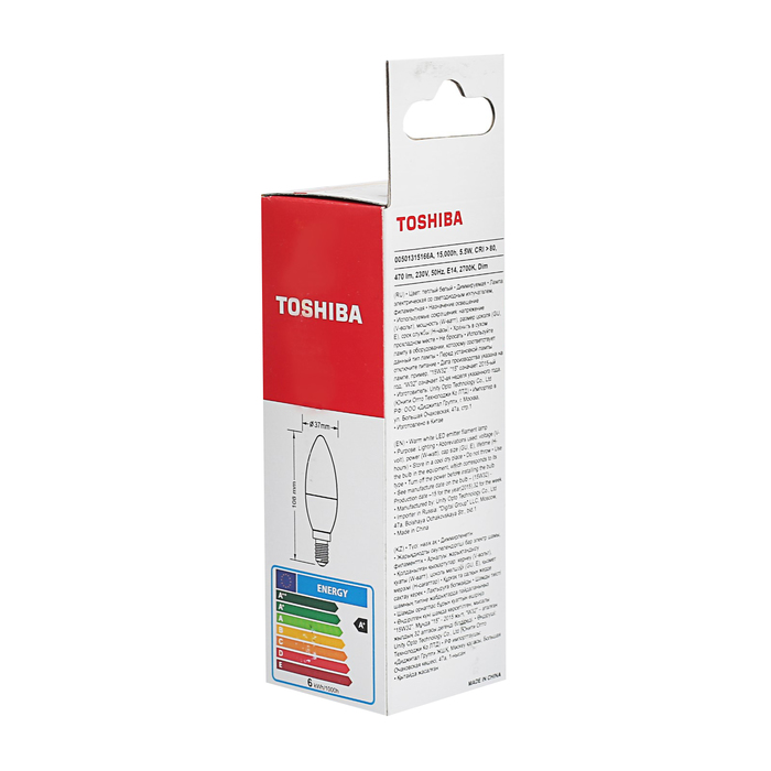 Лампа светодиодная TOSHIBA, C37, 5.5 Вт, E14, 470 Лм, 2700 K, диммируемая