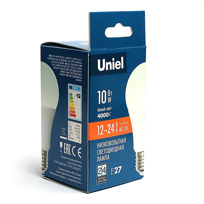Лампа светодиодная Uniel, A60, А, E27, 10 Вт, 4000К 12-24 В, матовая