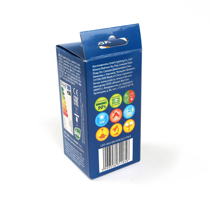 Лампа светодиодная Volpe A60, Е27, 8 Вт, свет теплый белый