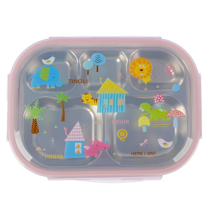 Ланч-бокс 0.5 л, 5 отсеков (2х150 мл, 2х75 мл, 50 мл), греется от кипятка, микс, 27х18.5 см