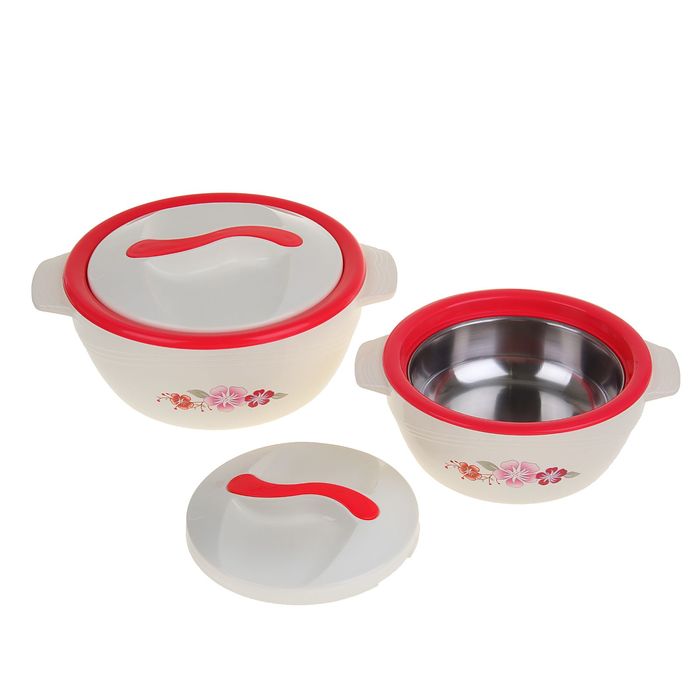 Ланч-бокс 1.6 л, набор, 2 контейнера (0.6 л, 1 л), внутри металл, 8 ч, микс, 23х21х15 см