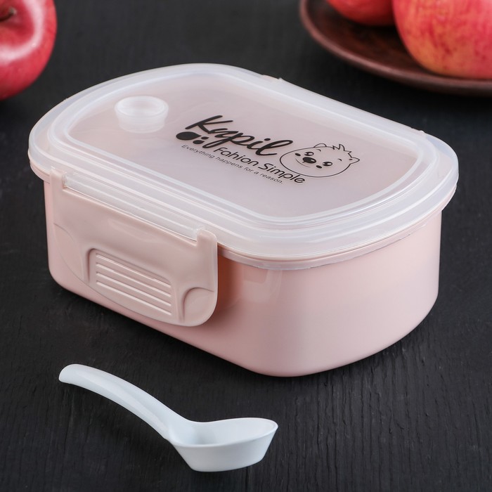 Ланч-бокс 2 уровня "Уют" прямоугольный 19х14х6 с ложкой, цвета МИКС