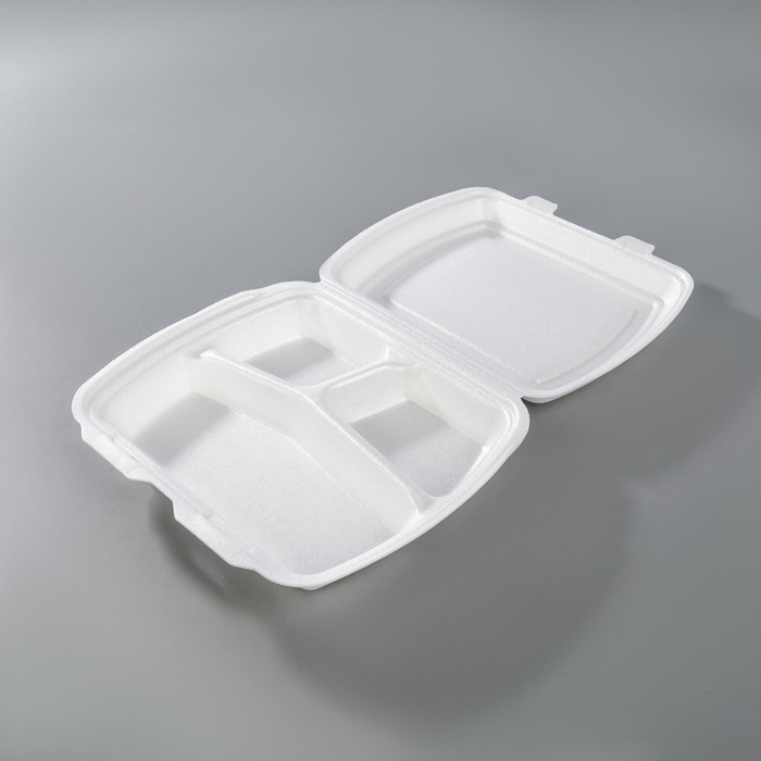 Обеспечить длительный срок хранения продуктов вам поможет Ланчбокс 247х198х75 мм, 3 секции, цвет белый 150 шт/кор. Эргономичное изделие используется в качестве одноразовой посуды.